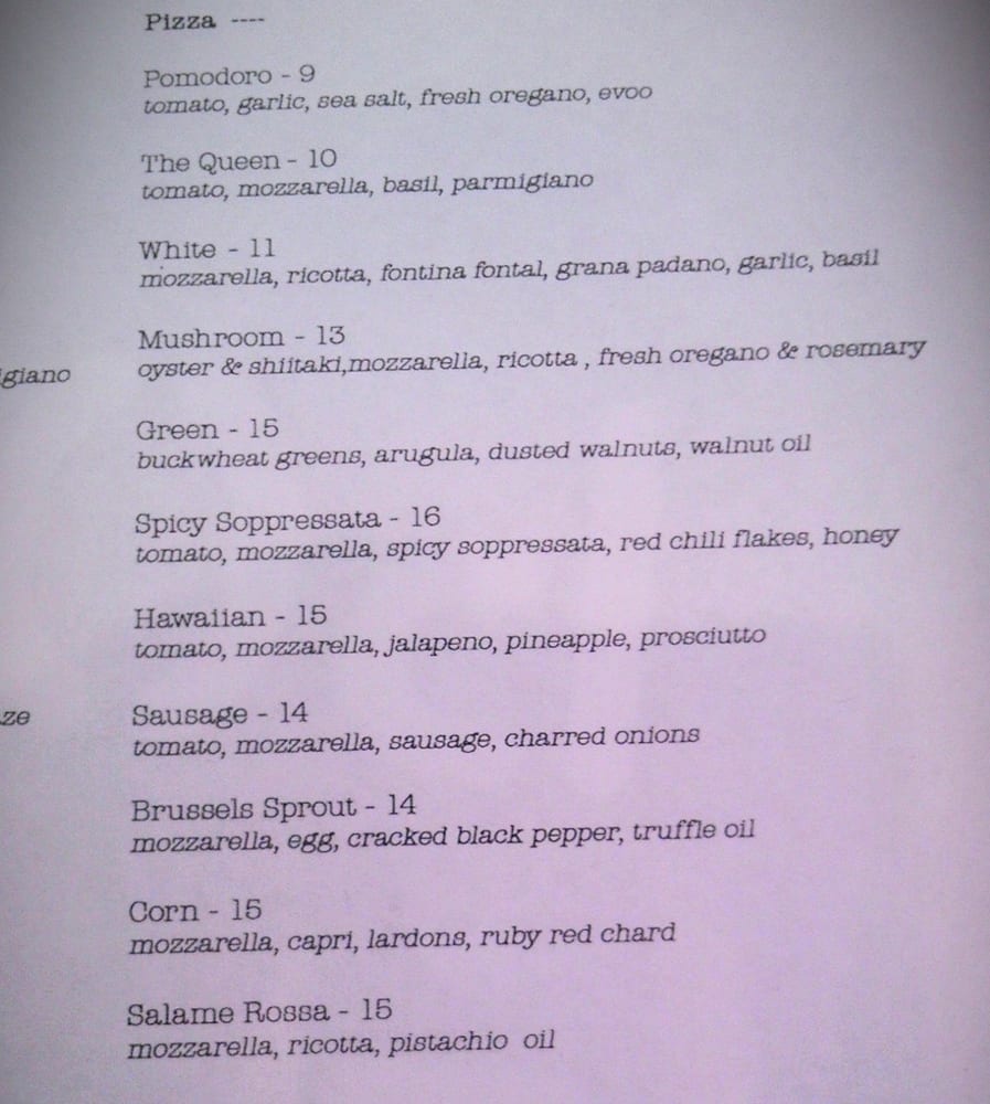 Brussels sprout, mozzarella, egg, black pepper and truffle oil.